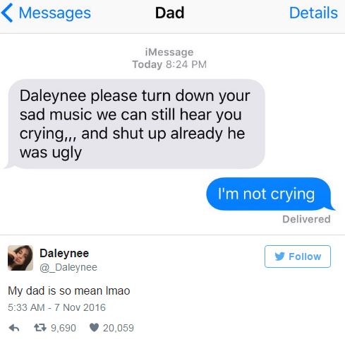 Daleynee posted the text she got from her dad on Twitter, and it has since gone viral.