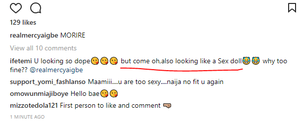 The fan, @ifetemi said; “U looking so dope but come oh, also looking like a Sex doll why too fine??”