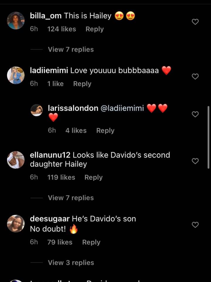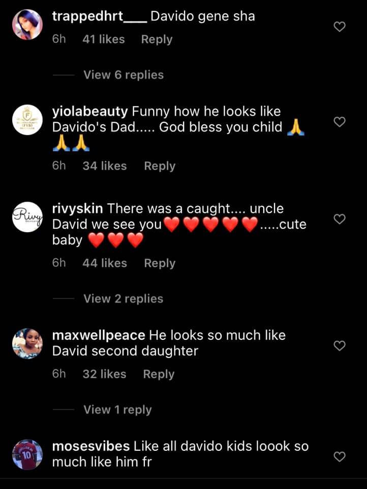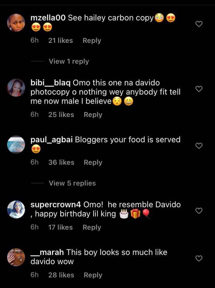 An Instagram follower, @ellanunu12, in reaction wrote, “He looks like Davido’s second daughter Hailey”.