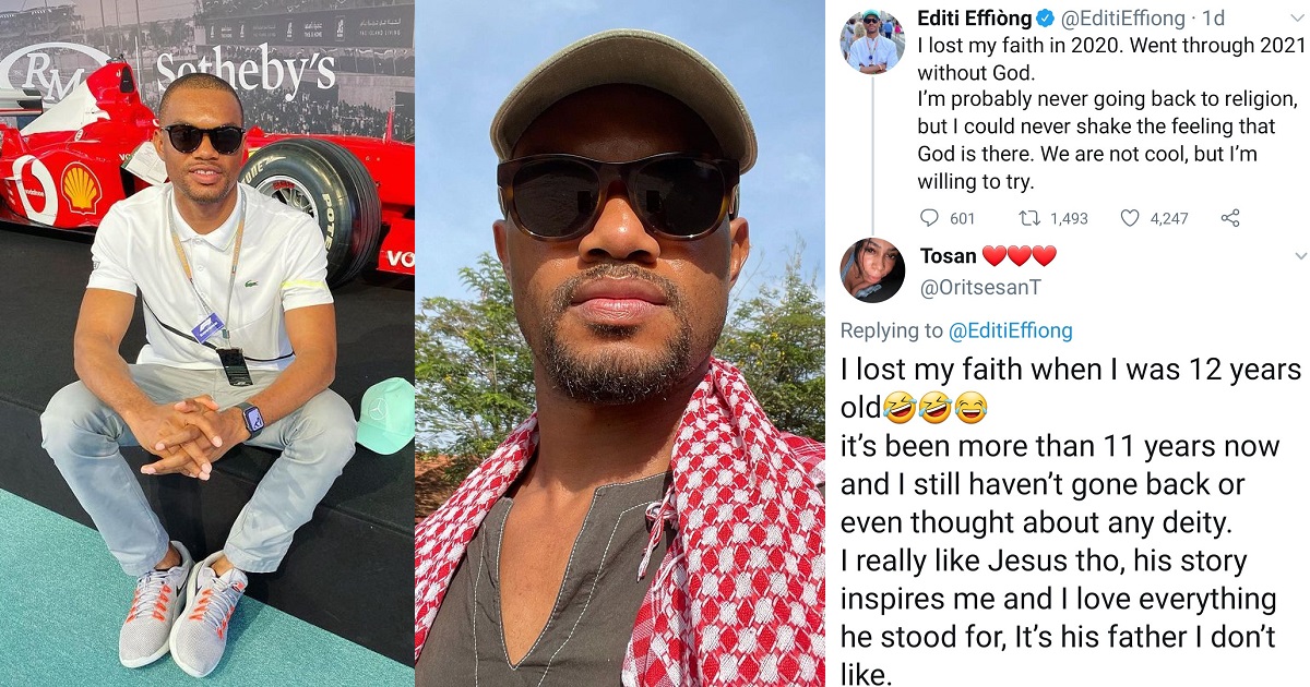 Nigerian filmmaker, Editi Effiong, has started a conversation about religion on Twitter after disclosing he lost his faith in God in 2020.