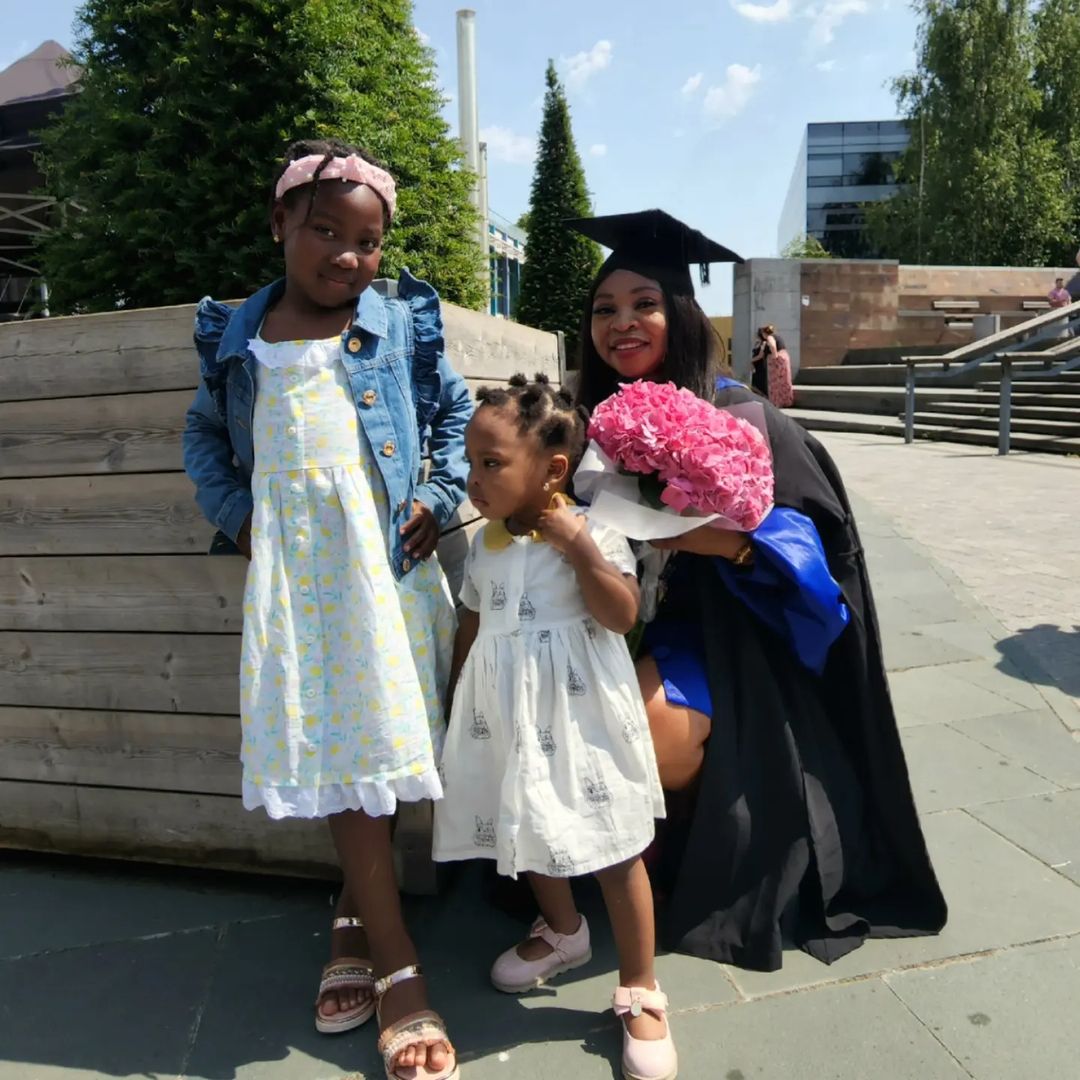 “Yesterday, she walked the aisle as a GRADUATE. She weathered the storm and survived. She lost a 5 month pregnancy, deferred for a year, birthed another child, took care of two children and successfully bagged her BA (Hons.) from the prestigious COVENTRY UNIVERSITY, UK. Congratulations to my wife, Mercy Stacy Ebere CHAM, @e_stacy11. God stepped in and you stepped out in style. We’ve got a lot to be grateful for.” He wrote.
