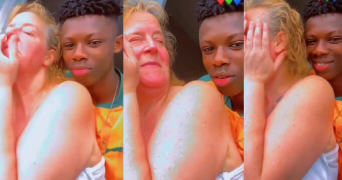 The video of a quite young man publicly displaying affection for his much older white lover has had netizens talking on social media.