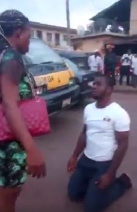 The man was however given the shock of his life when the girl rebuffed his love by hitting him quite a number of time to the chagrin of the crowd.