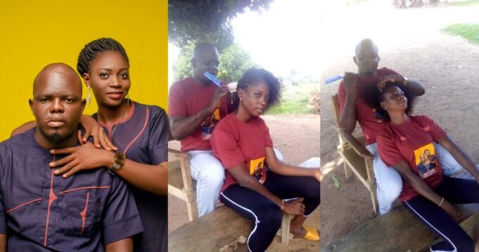 A Nigerian gentleman, one Mr Zion Vershima Alunam who hails from Benue state, has taken to his Facebook page to share photos of himself helping his fiancé, Joy Iember Uvebel, to loosen her cornrows.
