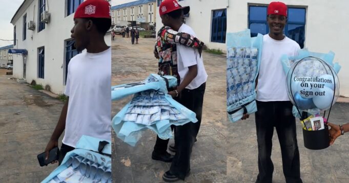 A heartwarming video has captured the emotional moment a Nigerian father surprised his son during his university sign-out celebration.