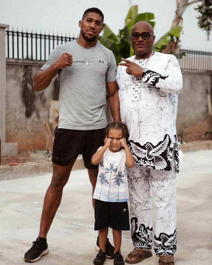 Boxing Heavyweight Champion, Anthony Joshua who is currently in Nigeria, shared lovely new family photos. He is pictured above with his father, Roland Joshua and his four year old son, Joseph Joshua.