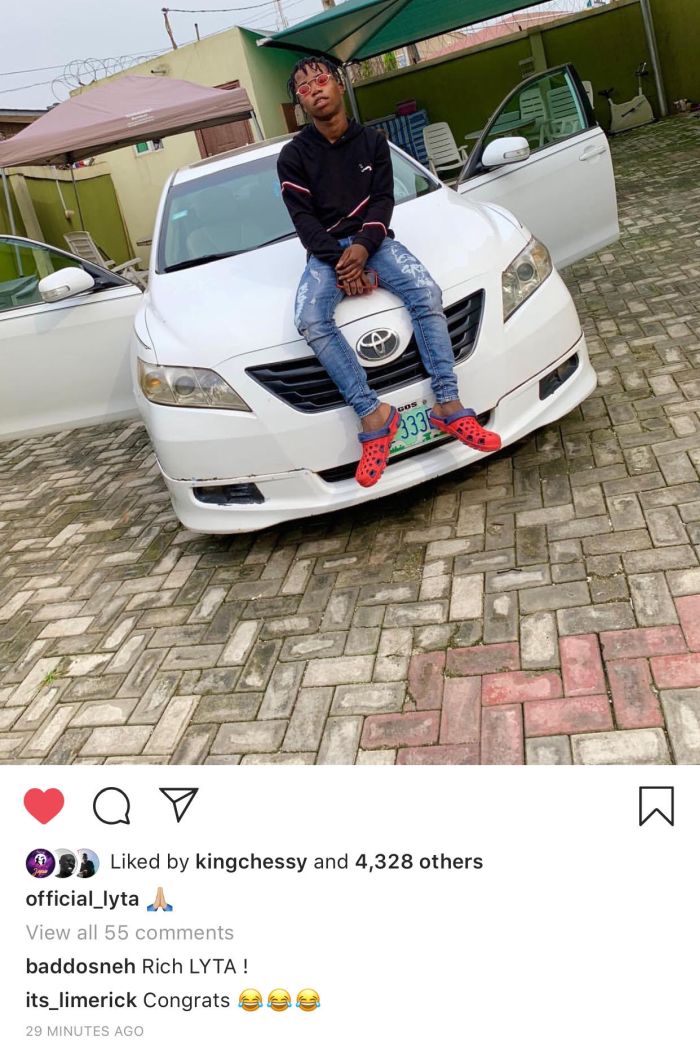 YBNL artiste, Lyta, who got signed into the record label sometimes in February has already acquired a car.