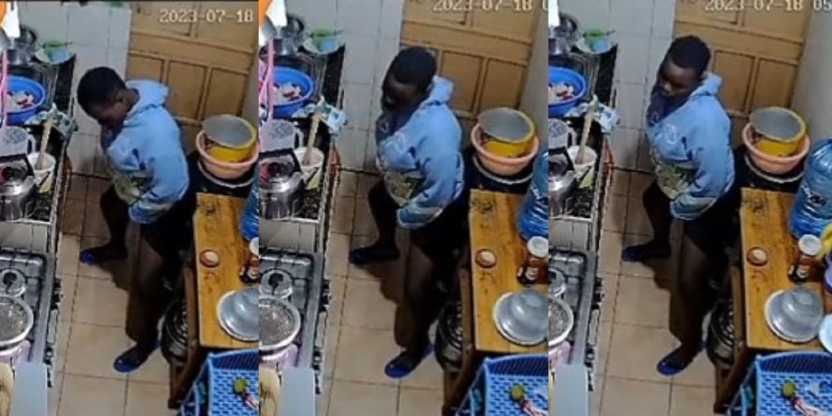 A video making rounds online shows the disturbing moment a maid urinated in the kitchen on her first day of work.