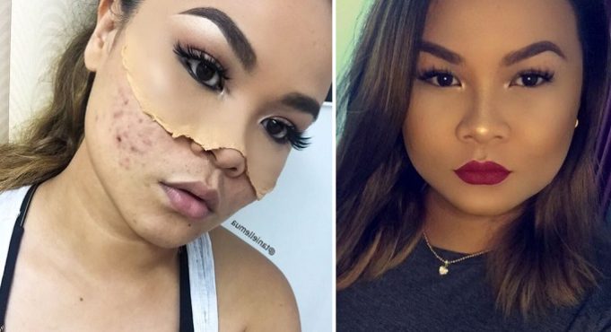People were left shocked at the cake of make-up she uses to cover her acne, and some others saw it as deception, realists said she needs to let her face breathe so she can treat the acne instead of masking it up.
