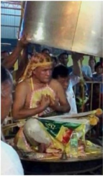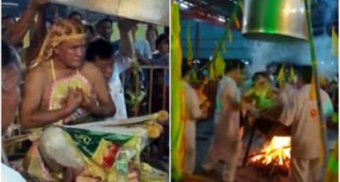 Lim Ba sat on a large wok for around 30 minutes with fire underneath in Nine Emperor God prayer session at a Chinese temple in Kuala Sanglang, Kedah when the incident happened.