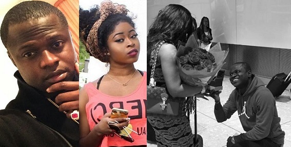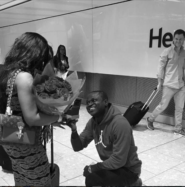 The popular jeweler, who recently copped a brand new Benz S500 for his beautiful fiance, proposed to her at the Heathrow Airport, United Kingdom.