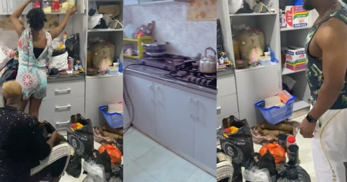 A Nigerian lady has taken to social media to share how her mum transformed her empty kitchen into a food filled-kitchen when she came to visit her after she delivered a baby.