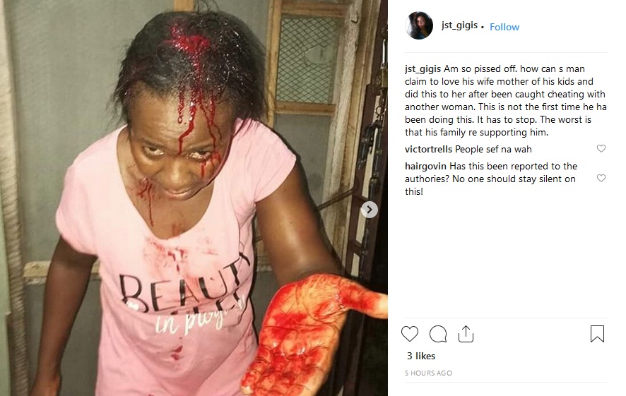 ”Am so pissed off. How can a man claim to love his wife mother of his kids and did this to her after been caught cheating with another woman. This is not the first time he ha been doing this. It has to stop. The worst is that his family re supporting him”