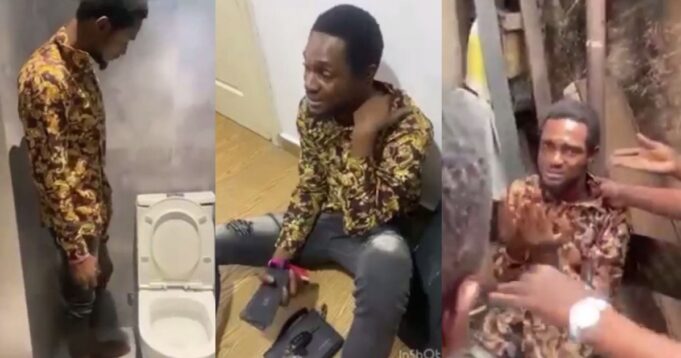 A video that’s currently serving the rounds online captured the moment the suspect was being interrogated by church members who caught him.