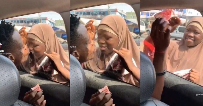 While the car’s window was wind up and was between them, so the “kiss” wasn’t physical, judging by the video, the little girl appeared quite uncomfortable with the demand of the young man but was propelled to oblige just so she can get the money.