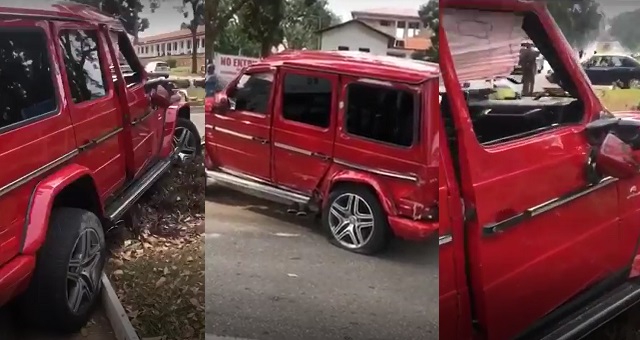 A video making the rounds on social media filmed a Red G-Wagon whip laying in ruins after it was crashed by the driver.