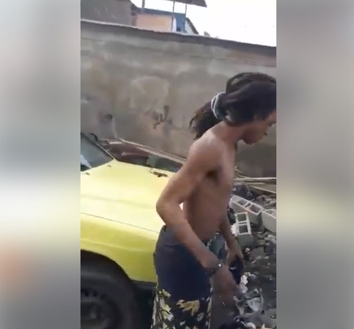 A young man was nabbed after disguising as a lady in order to deceive unsuspecting ‘victims’. In a video trending online, the guy was forced to pull off his clothes after he was suspected of being a man – as his fake breasts fell immediately during the public humiliation.