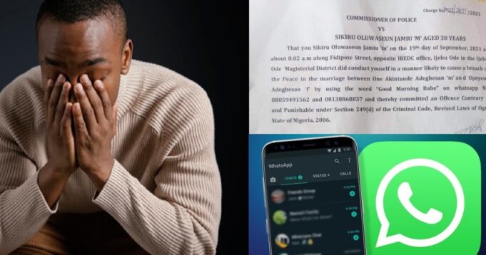 The man identified as Sikiru Oluwaseun Jamiu was arraigned in an Ijebu-Ode Magistrate’s Court on Tuesday, October 26th for sending “Good Morning Babe” to one Mrs Adegbesan.