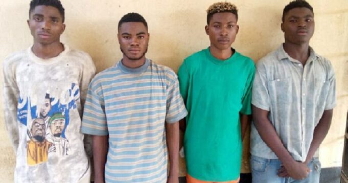 “The juvenile Welfare Centre (JWC) of the State CID, Ekiti State Police Command, on 21/04/2022 arrested one Miracle Emmanuel ’19yrs’, Bello Tunde ’20yrs’, Peace Osho ’20yrs’ and Emmanuel Oluwaseun ’22yrs’ for conspiracy to wit Rape, Rape and Cyber Stalking against a 28yr old woman.