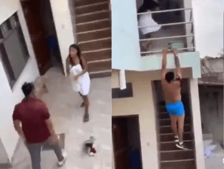 A viral video circulating online shows a man having a heated argument with his girlfriend after he caught her sleeping with another man.