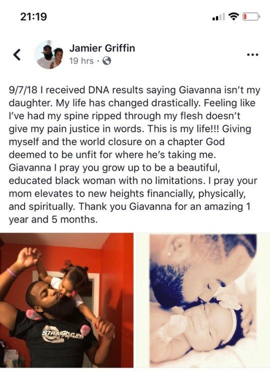 Jamier Griffin can be seen in the photos with a young little girl who he for over a year, thought was his daughter only for him to find out that she’s not.
