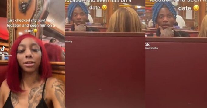 According to the lady, who shared the video showing her man’s reaction, she traced him to an eatery where he was having a date with another lady, but she did not confront either of them.