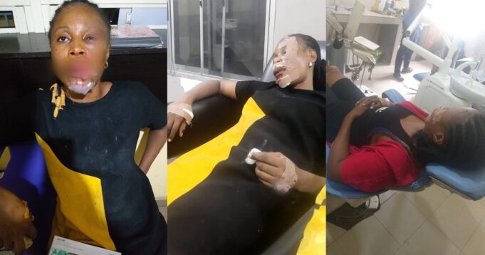 In a thread shared on his Twitter handle, the man with the handle @groovereben, shared photos of his spouse with her bruised body and almost disfigured face.
