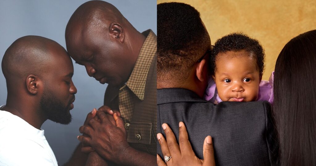 A man has rebuked his father for calling him out for carrying his child while his wife held a small hand bag.
