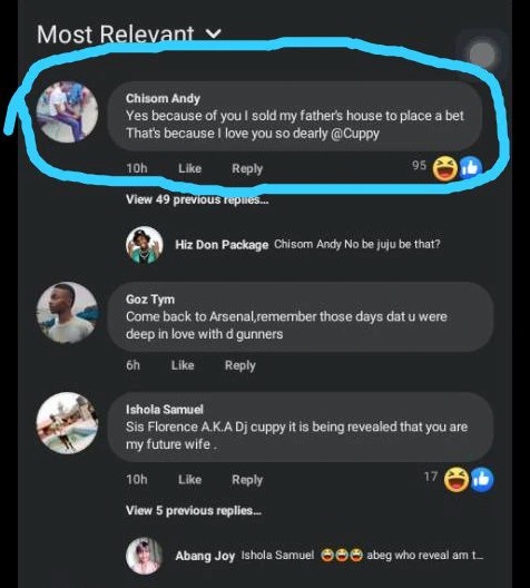 A man identified as Chisom Andy on Facebook who happened to be one of DJ Cuppy’s crush stated how he sold his father’s house to place a bet because of his love for her.