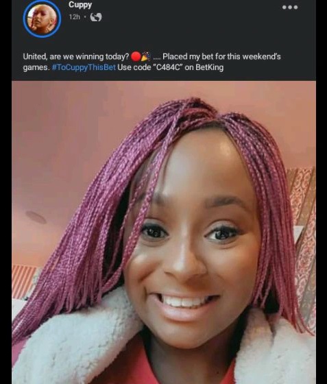 DJ Cuppy is a Manchester United fan and a brand ambassador to Betking, a sports betting company in Nigeria. In promoting Betking, DJ Cuppy booked a bet and shared the booking code to all her fans, to place the bet.