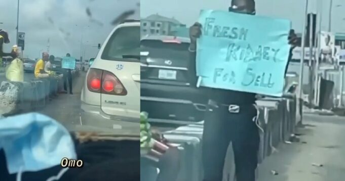 A video making the rounds online captured the moment a man brandished a cardboard-ad, telling people that he had a fresh kidney for sale.