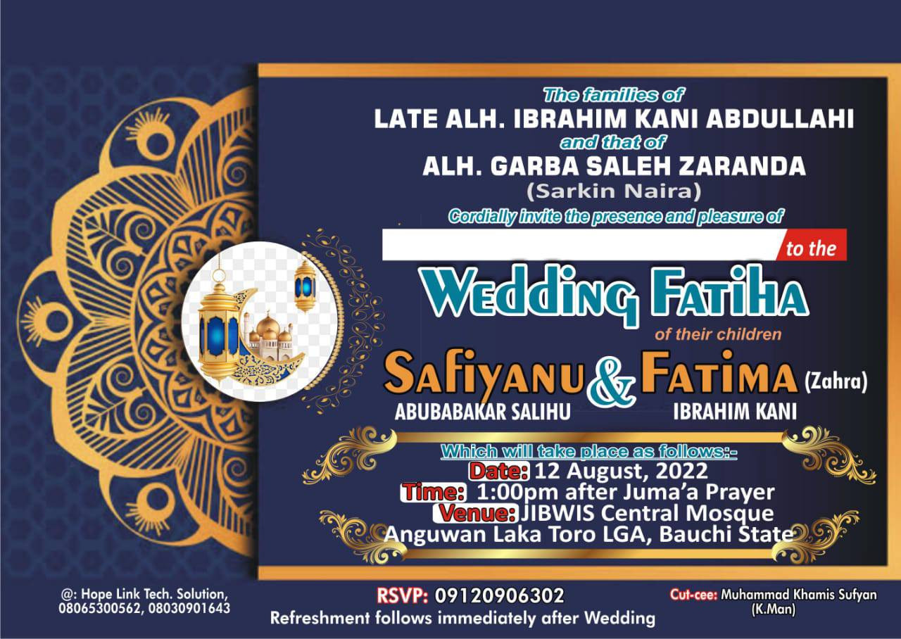 “Life is full of lessons to believe. Invitation to my twin sister wedding fatiha Fatima Ibrahim kani Zara.