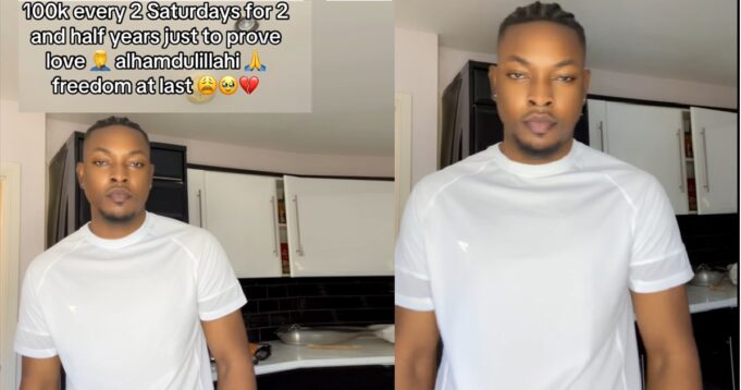 He captioned, “100k every 2 saturdays for 2 and half years just to prove love alhamdudillahi freedom at last” on a video as he heaved a sigh of relief from the splurging.