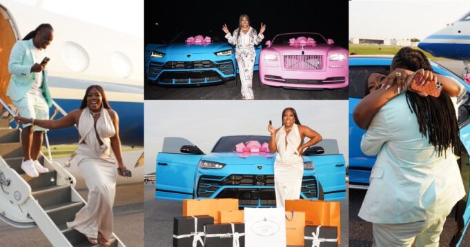 He treated his wife to a surprise private jet trip, gifted her two new exotic cars – a Lamborghini and Rolls Royce, and loads of luxury clothing, shoes, handbags and accessories from top designers.