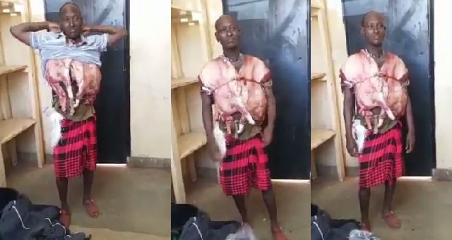 According to reports, the man who is said to hail from Maasai, Kenya, allegedly stole a goat and slaughtered it. He split the animal into two from the backbone and tied the parts to his body like an inner cloth/vest.