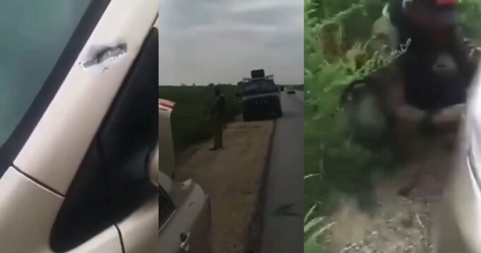 “They shot my tyre, they shot my car,” he said, showing the dent the bullet made on his car.