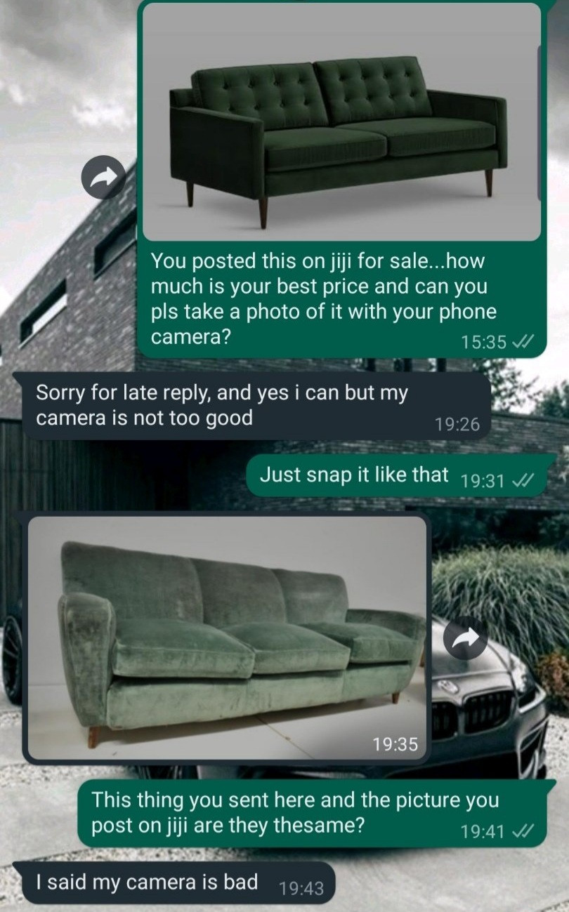 In the chat, Nnamdi indicated interest in the cushion and told the vendor to snap the furniture with his phone camera and send to him.
