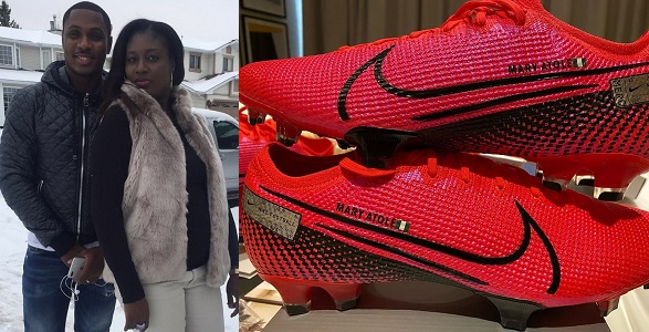 Manchester United player, Odion Ighalo has honored his late sister, Mary Atole by customizing her name on his new Nike boots.