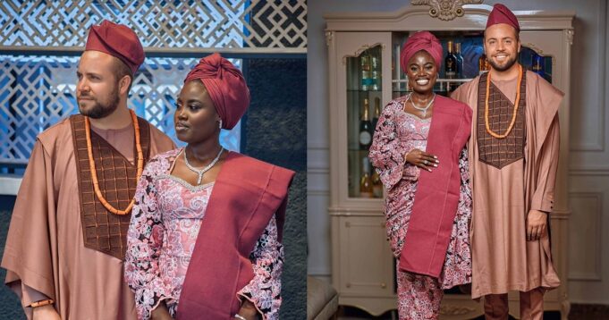 A Caucasian content creator and his Yoruba bride have left many grinning from ear to ear after they shared a video of their colorful traditional wedding online.