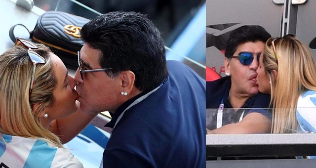 Oliva, who is 30 years Maradona’s junior, looked to be enjoying the match as she gave her man a kiss.