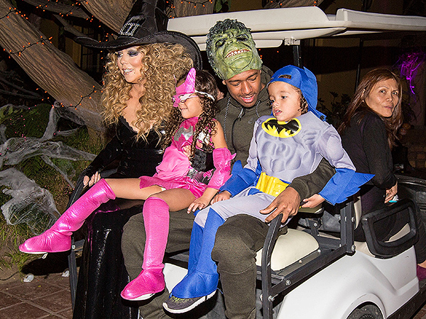 While Mariah dressed as a witch, Nick Cannon wore a dark green sweatshirt to complement his Hulk mask. Their twins, Monroe and Moroccan, 4, took on the costume of Batgirl and Batman, respectively.