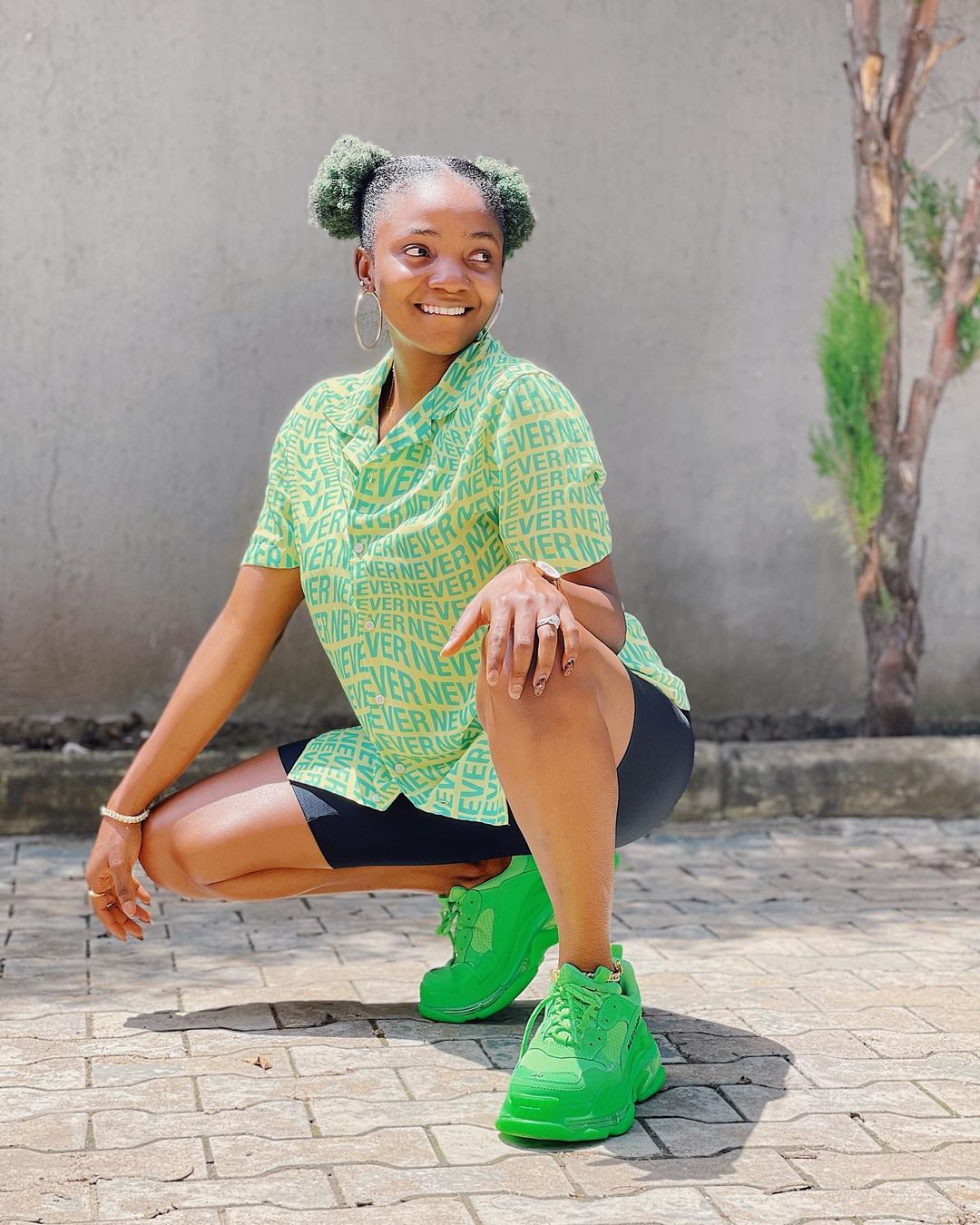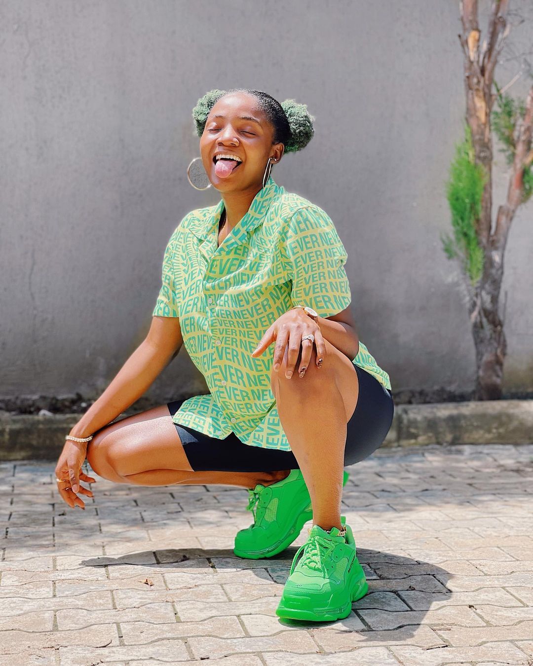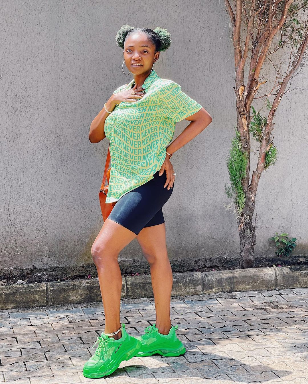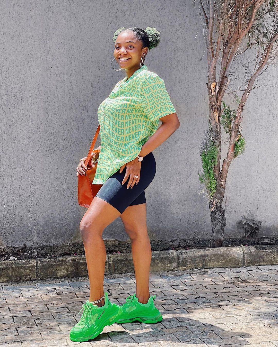 Simi had taken to her Instagram page to share new photos of herself rocking a green shirt and a bikers short while gushing over her beauty.