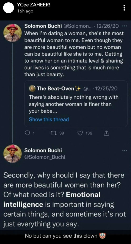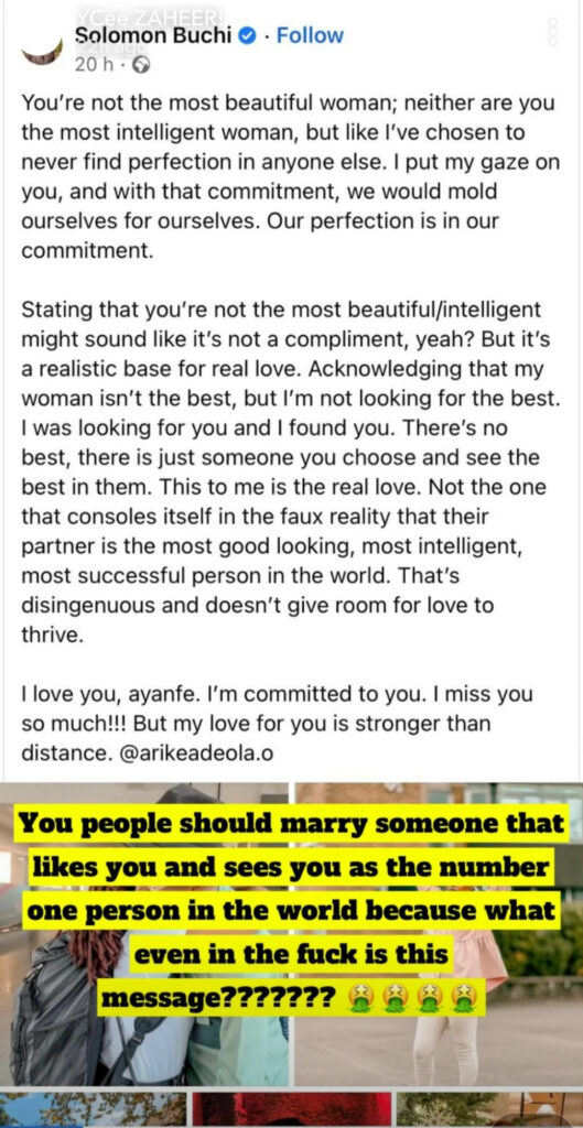 Some accused him of being a narcissist who feels the need to talk down on his woman in public to feel good about himself, while some others argued that there was nothing wrong with his post but he shouldn’t have posted it online..