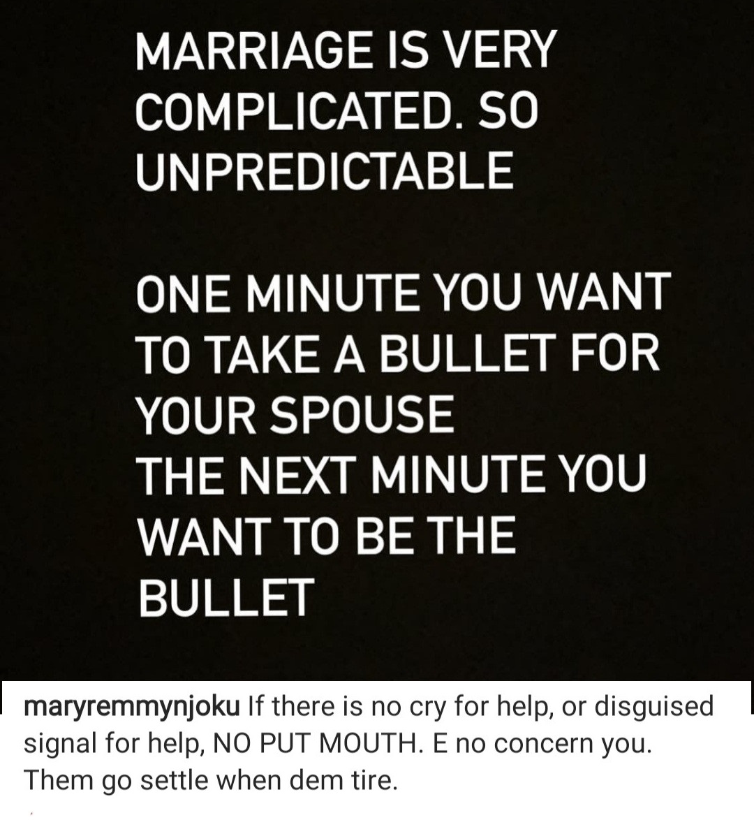 Nollywood Actress,Mary Remmy Njoku has told her followers to avoid giving married couples unsolicited words of advice.