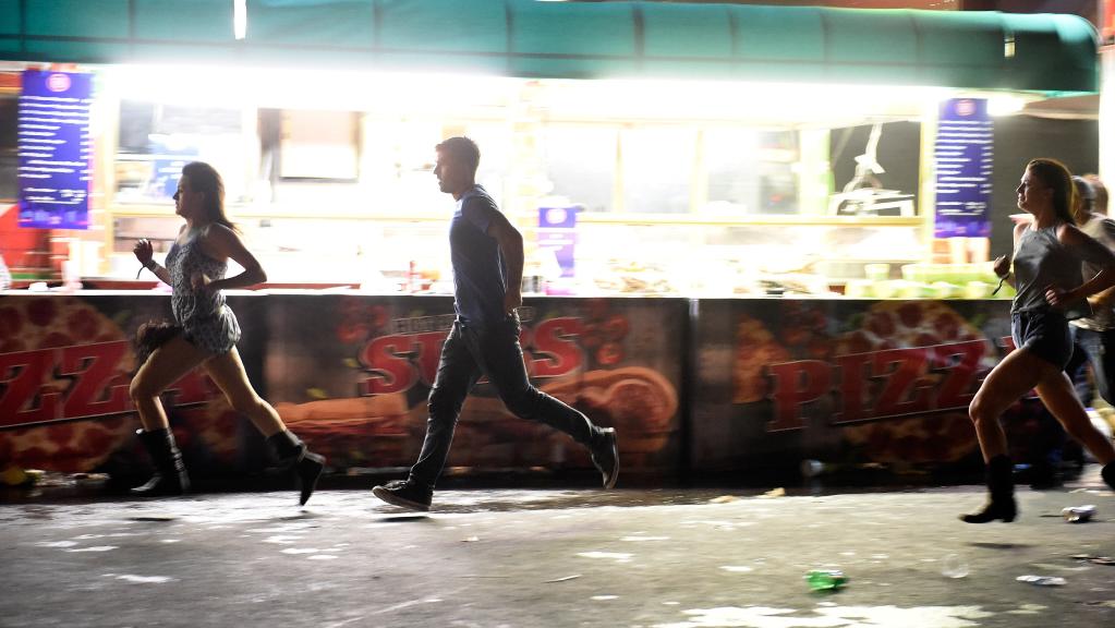 People run from the Route 91 Harvest country music festival after apparent gunfire was heard in Las Vegas. Photo Credit: AFP