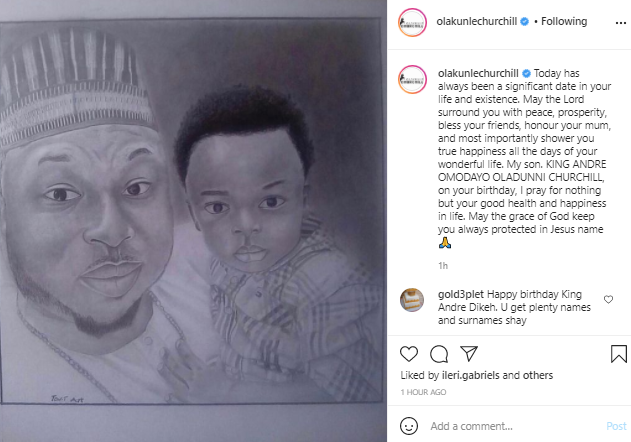 “My son. KING ANDRE OMODAYO OLADUNNI CHURCHILL, on your birthday, I pray for nothing but your good health and happiness in life. May the grace of God keep you always protected in Jesus name”.