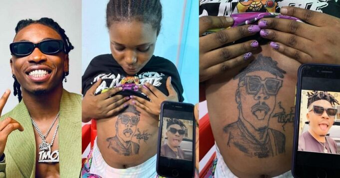 Just yesterday, a pregnant Nigerian Lady trended after she tattooed her favourite singer, Mayorkun on her baby bump.
