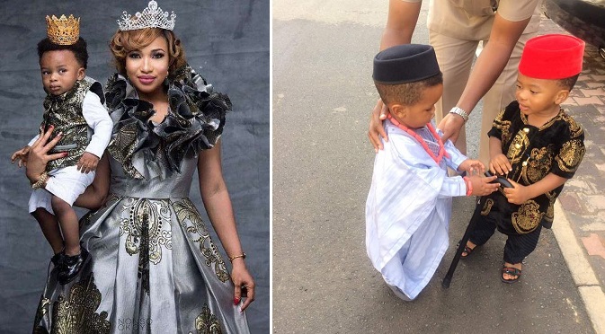Schools are in light of the country’s forthcoming 57th Independence engaging in activities to celebrate the National Holiday – Tonto Dikeh‘s son is in the spirit of this!