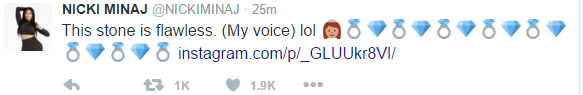 The curvy Hip-Hop queen got a huge diamond ring from her boyfriend, Meek Mill and she couldn’t help but gush about it. Sharing the photos on social media, she wrote: