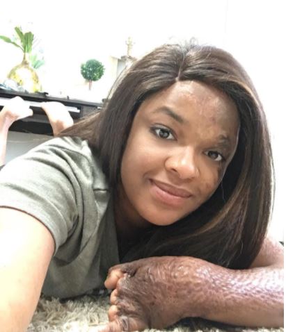 She lost 4 of her fingers, an ear, and all of her hair in the fire. She also had burns on over 60% of her body, including on her stomach and she was told she could never have children. But as God would have it, she conceived.